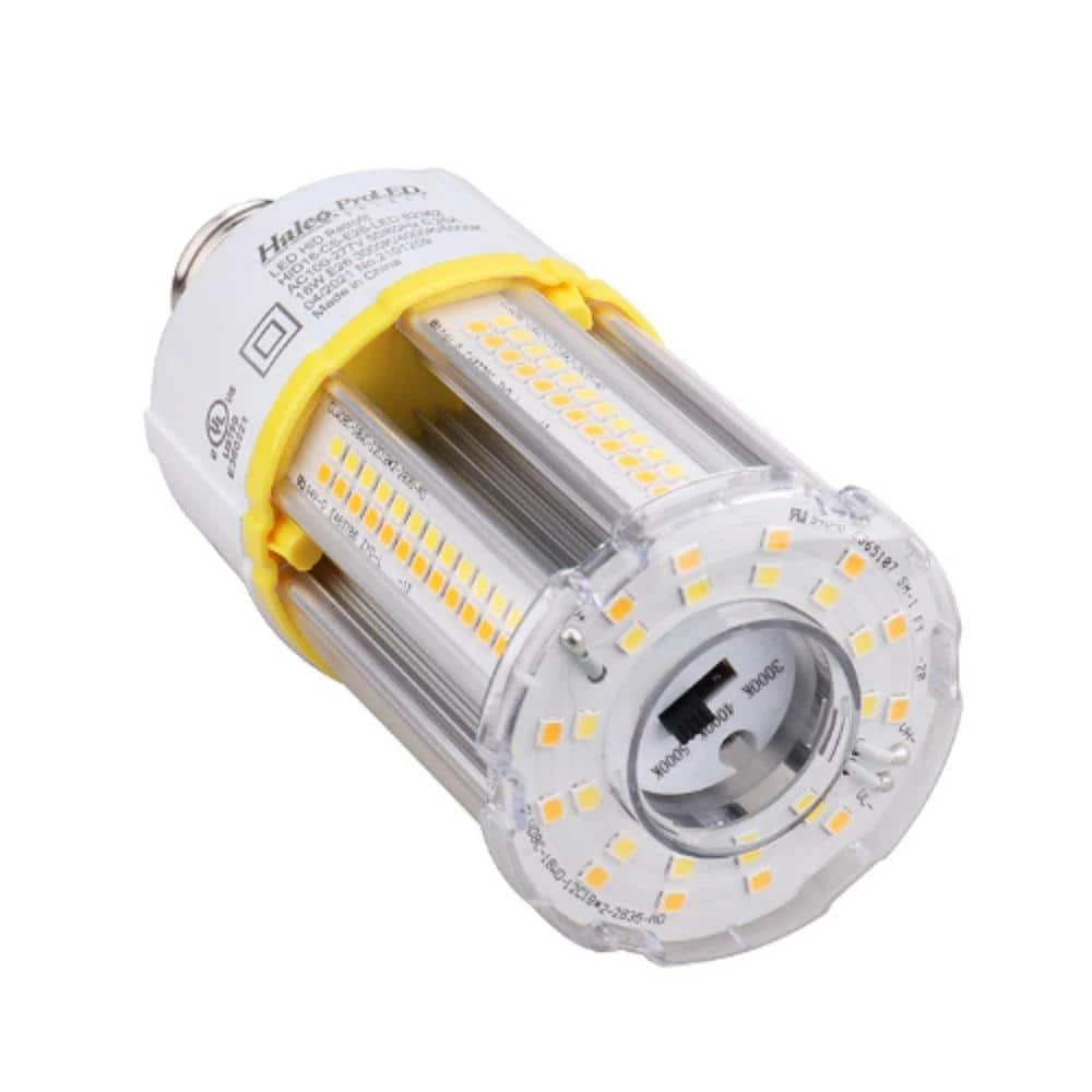 The ProLED Select HID Retrofit series offers an efficient LED retrofit opportunity for high bays, post tops, area lights and many more with a great form factor. These lamps offer an energy-efficient alternative to traditional High Pressure Sodium and Metal Halide lamps. A 50,000-hour useful life, combined with the ability to eliminate the ballast ensures that luminaire maintenance is a thing of the past. The ProLED HID Retrofit lamps are enclosed fixture and damp location rated. They are 83 CRI and come with CCT selectability allows for simple and easy installation. CCT Selectable – 3000K, 4000K and 5000K switch.