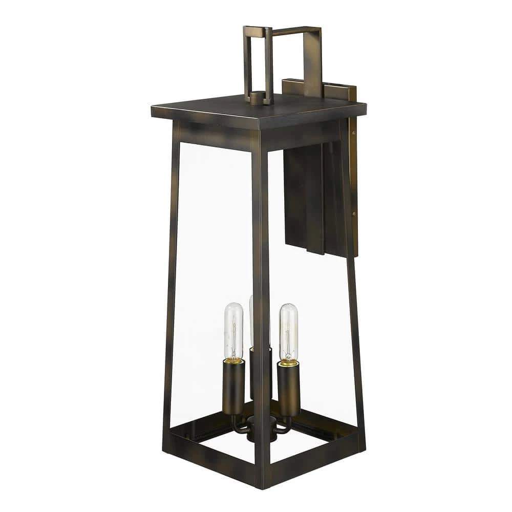 The Alden collection of outdoor wall lanterns combine sharp lines and angles. Elongated, tapered bodies and clear glass come together handsomely in this modern design. Alden is available in matte black and oil-rubbed bronze and comes in 3 sizes.