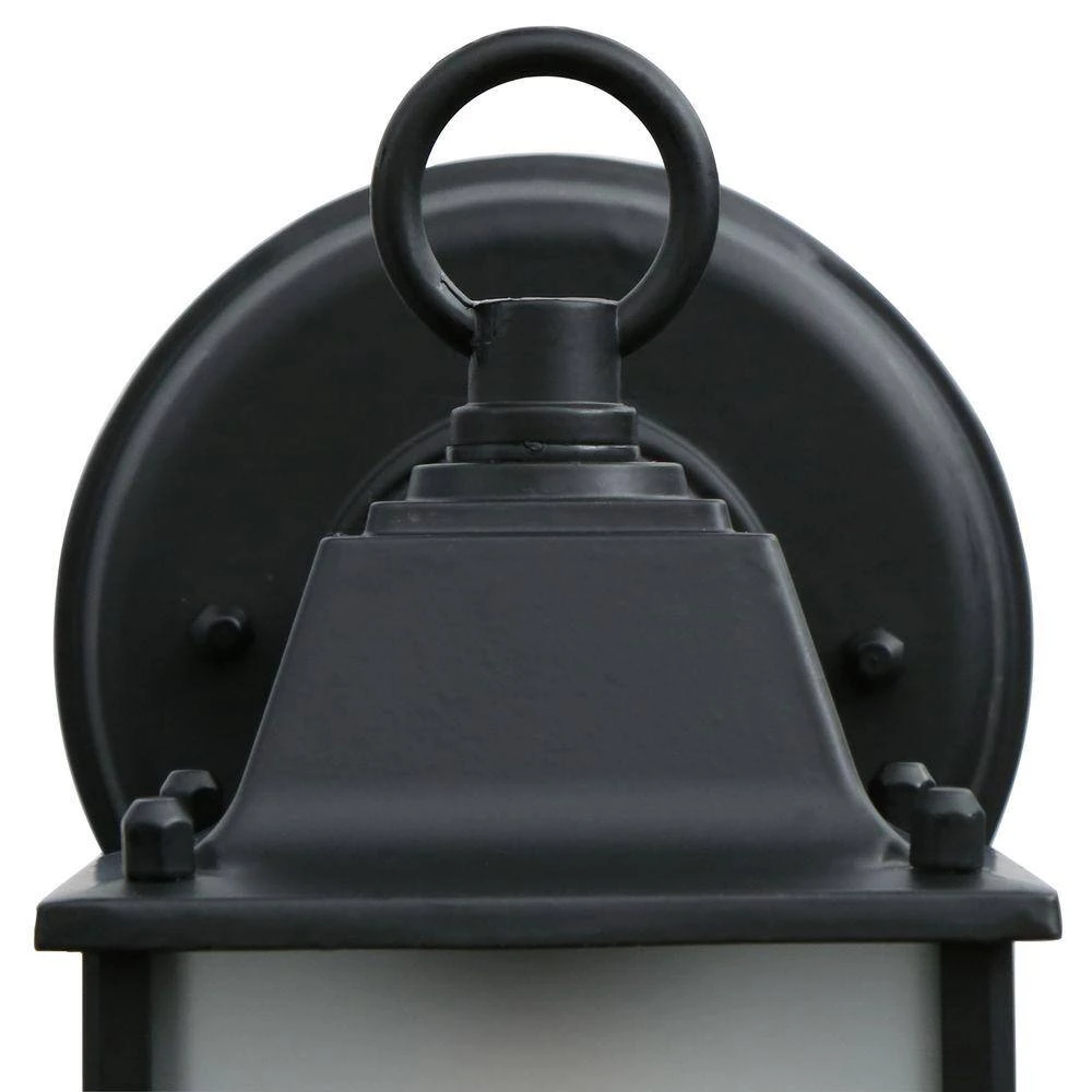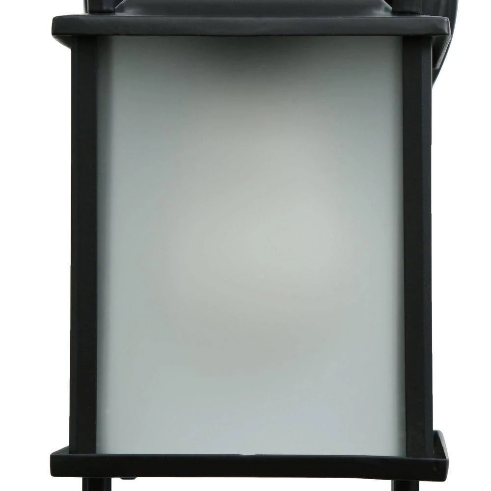 The Builder’s Choice collection 1-light wall-mounted lantern is made of cast aluminum. This material is a good choice for exterior lighting since it does not rust and resists corrosion. The classic design of this fixture lends itself to many architectural styles. Complementing its clean design, this lantern features frosted glass panes.