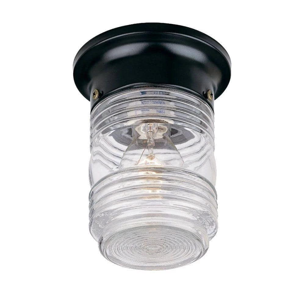 The Builder’s Choice collection 1-light ceiling-mounted lantern is made of powder-coated steel. This design is basic yet versatile. There are many applications for this budget priced fixture. Complementing its clean design, this lantern features a clear jelly jar globe.