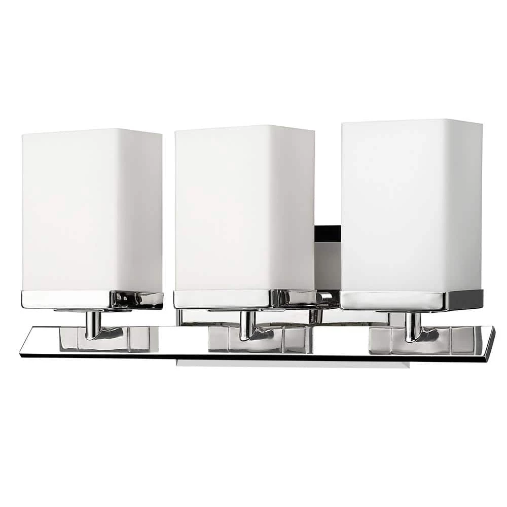 Transform your bathroom into a spa oasis with the burgandy family of vanity lighting. Hand-blown, opal etched glass shades sit perched upon an angled bar. These square lights that sit at attention will get attention.
