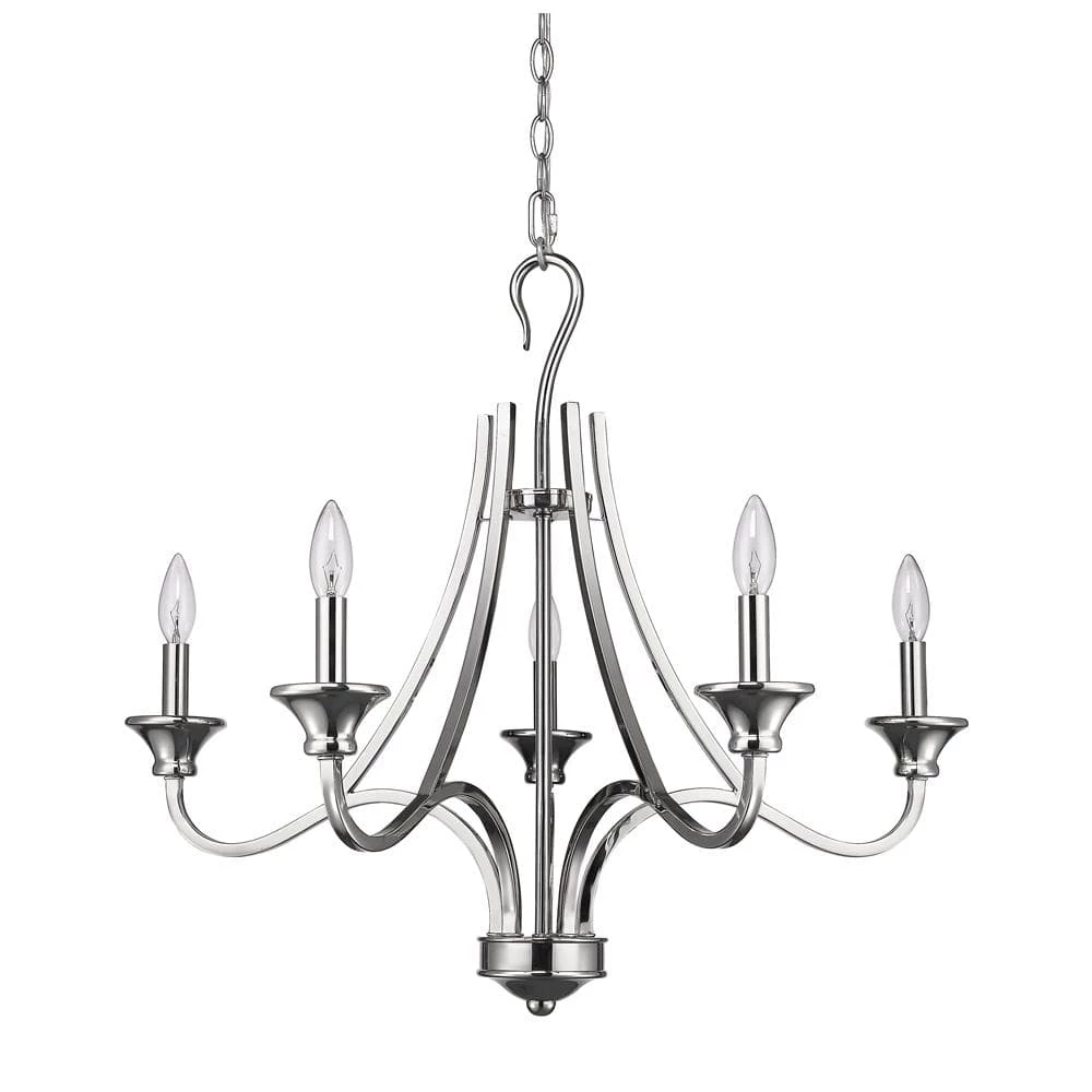 Michelle Indoor 5-Light Chandelier in Polished Nickel finish. This unique Shepherd’s Crook hanger in. with sweeping arms design makes this a stand-out chandelier. With the flip of a switch, A house becomes an oasis, A thought becomes a feeling. Thanks to a simple, special glow of light.