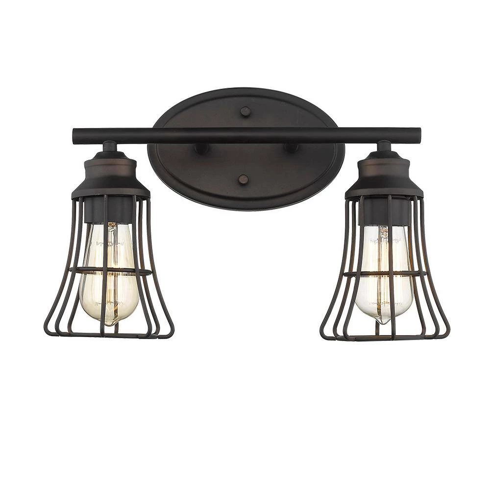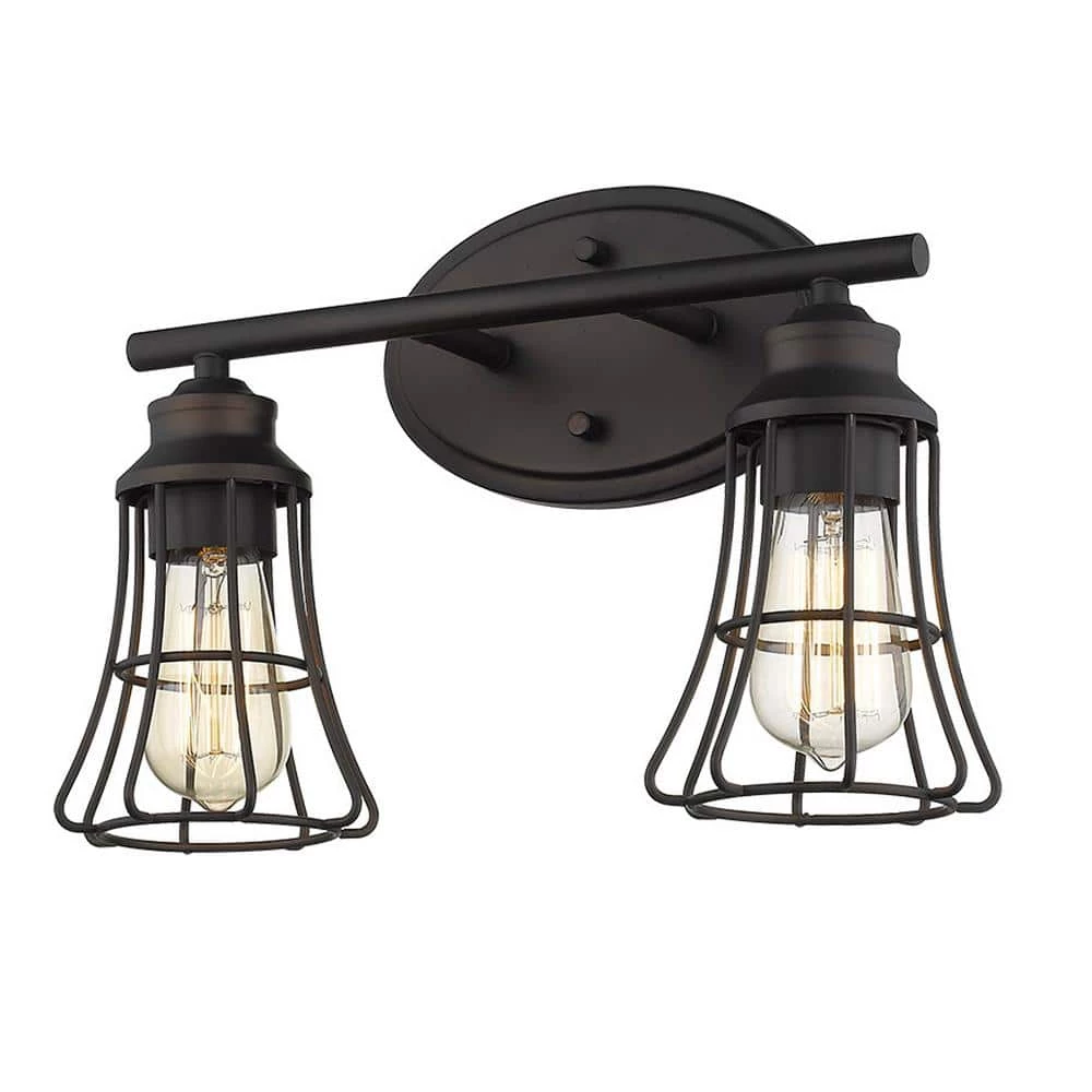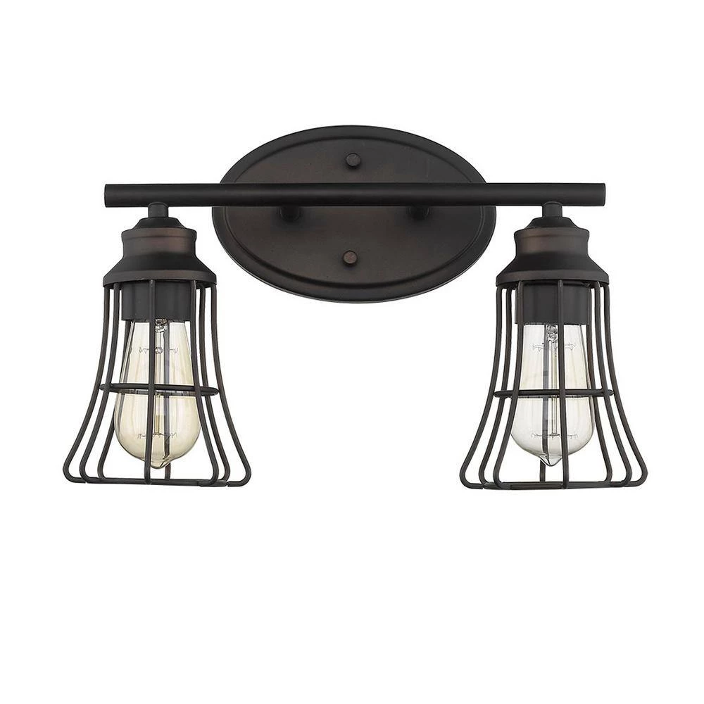 Piers features metal framework reminiscent of the workshop with soft styling that is perfect for the bath. The oil-rubbed bronze finish continues onto the metal cage shades. Piers may be mounted in an upward or downward position.