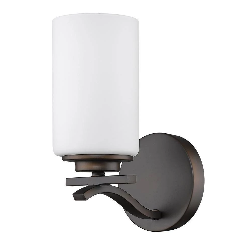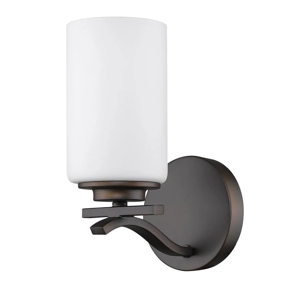 The poydras family of bath fixtures features a laid-back craftsman style. Cylindrical shades of etched glass stand perched upon a horizontal frame. Available in oil-rubbed bronze or satin nickel.