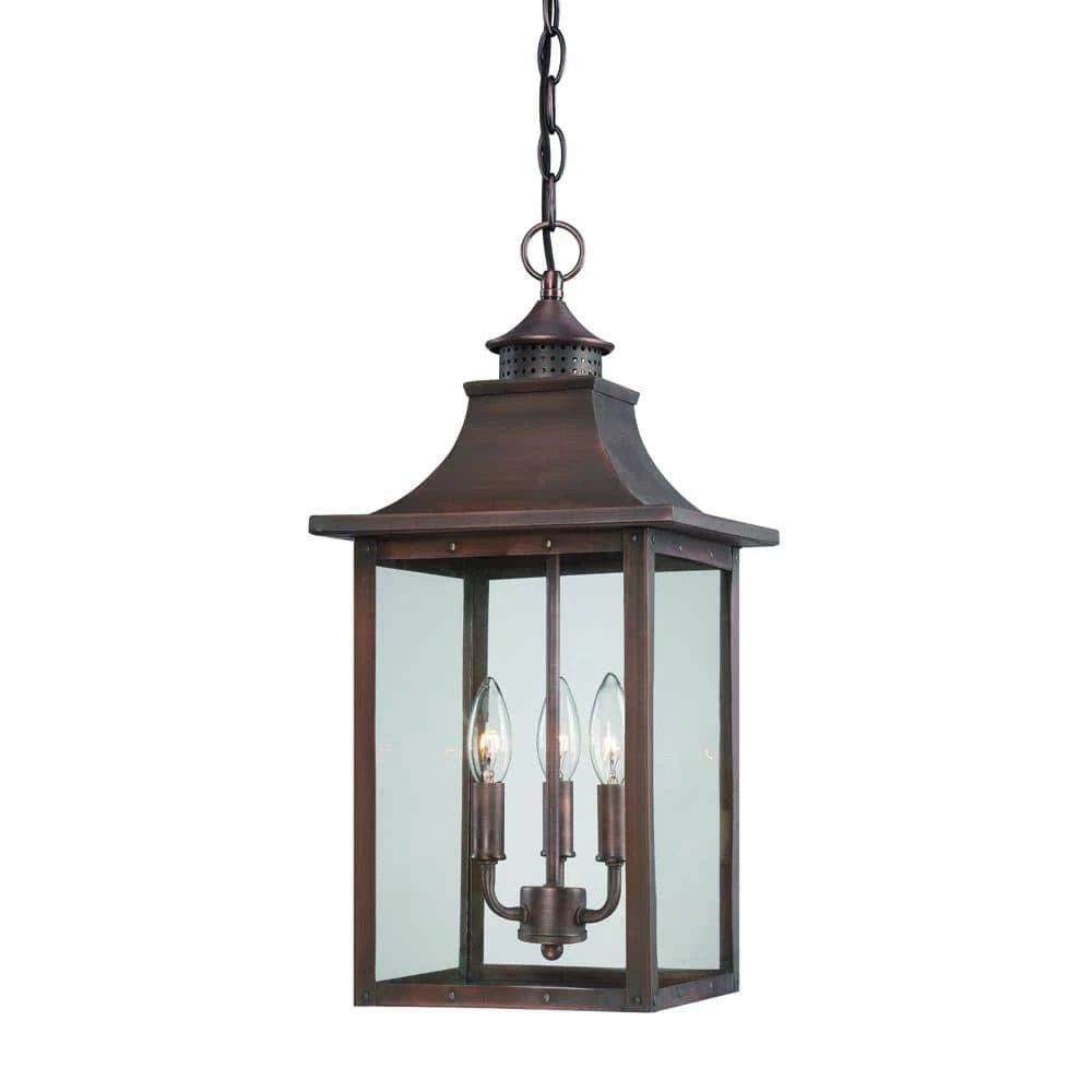 The St. Charles collection is a classic Colonial America design. Hand-crafted of solid copper and reminiscent of gas lanterns of yester year. The authentic construction details include hammered rivets and soldered joints.
