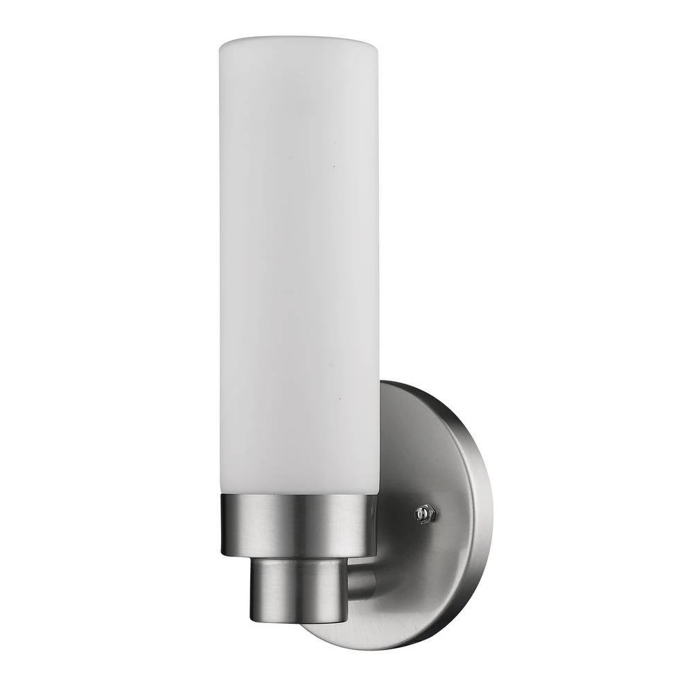 Valmont offers a minimalist, modern design. Cylindrical shades of opal etched glass sit tall on standard fixtures. Available in satin nickel and oil-rubbed bronze.